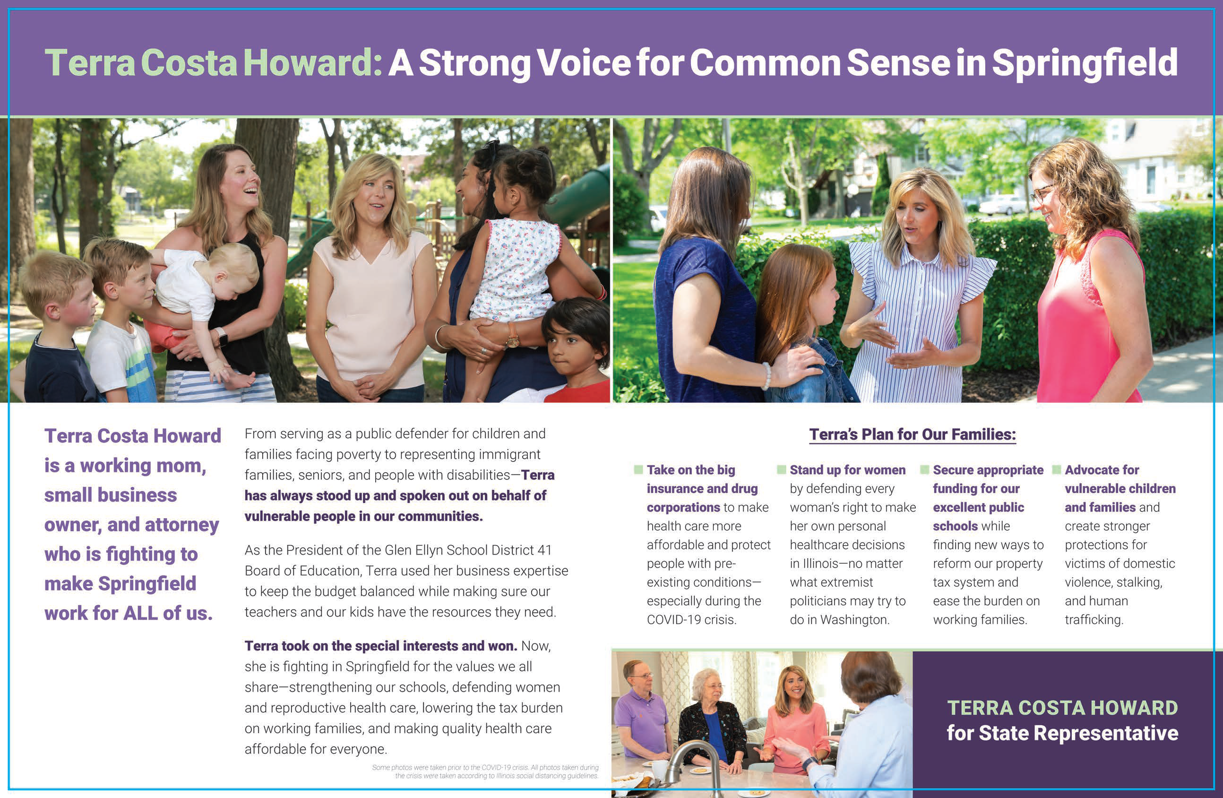 Our mail program focused on Terra as a no-nonsense fighter for women, in contrast with Breen, one of Illinois’ staunchest opponents of women’s rights during his time in Springfield.